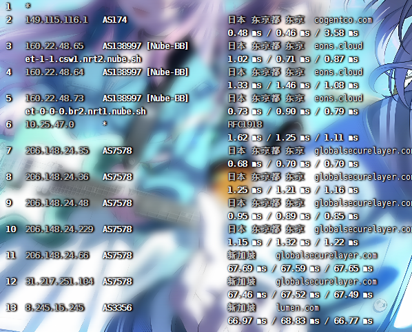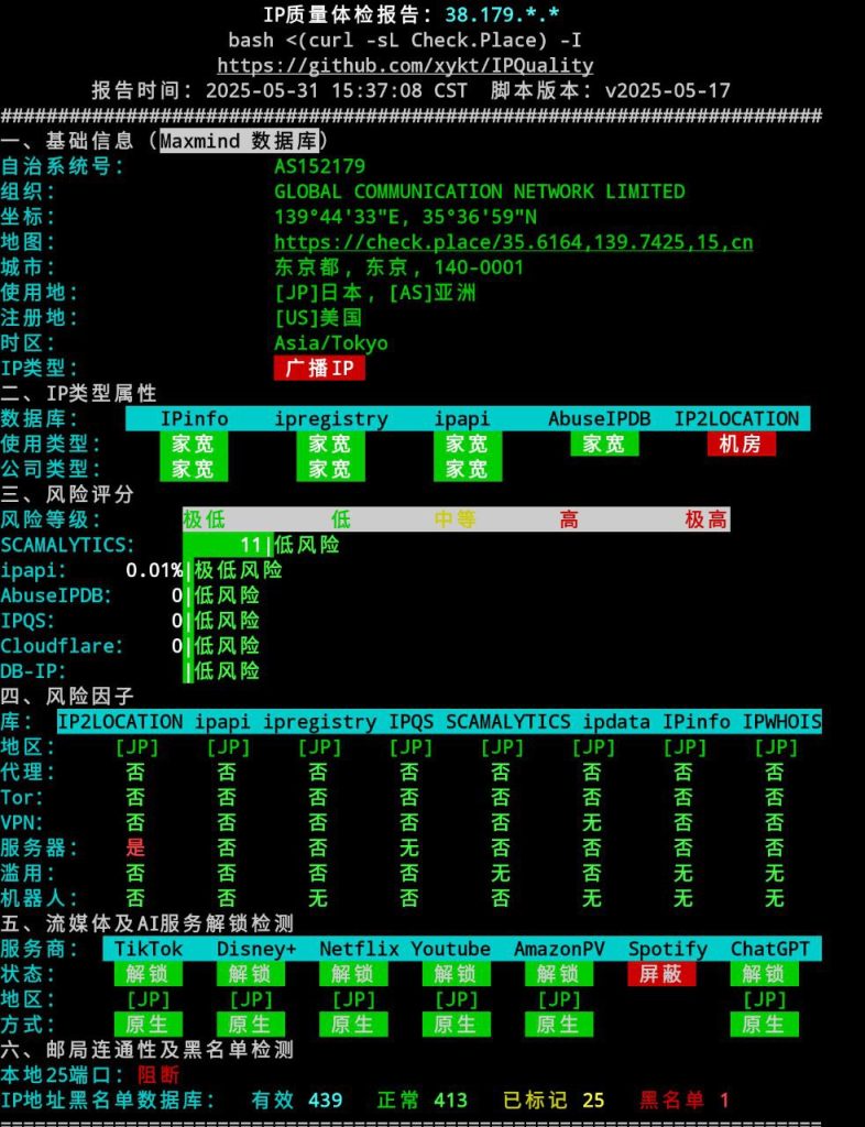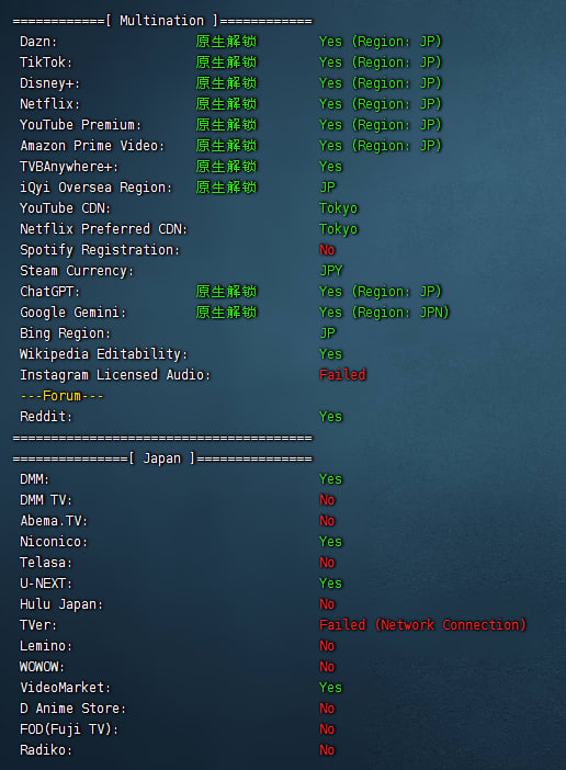 【远古文章搬运】IPRaft 日本3刀/月 小机测评 Wakaka 动态 发布于 2025-05-01 74 字 预计阅读时间: 少于 1 分钟 配置:1核CPU、512M内存、8GB 硬盘、750GB流量、1000Mbps带宽,3刀/月 三网去程 回程路由 流媒体解锁 总结 纯落地机 流媒体解锁还行,对得起3刀的价格 直连效果不太理想,建议搭配中转使用
